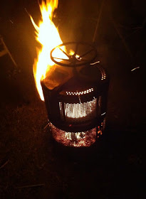 The campfire is worth a mention. It was two washing machine drums with the wheel still attached, so it was effectively on a stand and away from the ground. The fire was set in one of them and the other was turned upside down and put on top. The effect of this was to drive the heat out sideways and made an unbelievable difference to the heat output. People seriously had to move their chairs backwards to get away from the heat and we had one complaint of pubic hair being singed off,