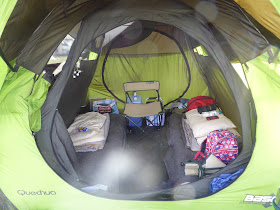 My eldest son and I carried everything in on one run, using a decent trolley and a crap one. The crap one really let us down and will be replaced before we take this type of thing on again. The little wheels just weren't up to uneven stones and grass. We'd worked really hard to condense all we'd need down to as little as possible, and decided to take the Quechua Base Seconds with the optional inner you can buy, to serve as our 'home' for the weekend. In hindsight, considering the weather could only be described as iffy, it would have been better to take something a bit more spacious.