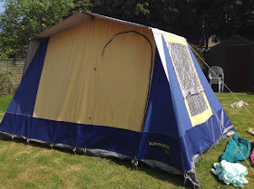 They offer benefits like you can stand up all over the internal space. There is a normal walk in height door. The seventies and beyond offered some questionable if not funky colour choices. These wacky tents can be festooned with bunting and filled with cushions just as easily as a Bell Tent.  I went on to ebay to pick out a 'smallish' Frame Tent to illustrate my point and found a lovely little Buttermilk Yellow and Royal Blue one. It was £55. The seller was happy for people to arrange courier should they so wish.